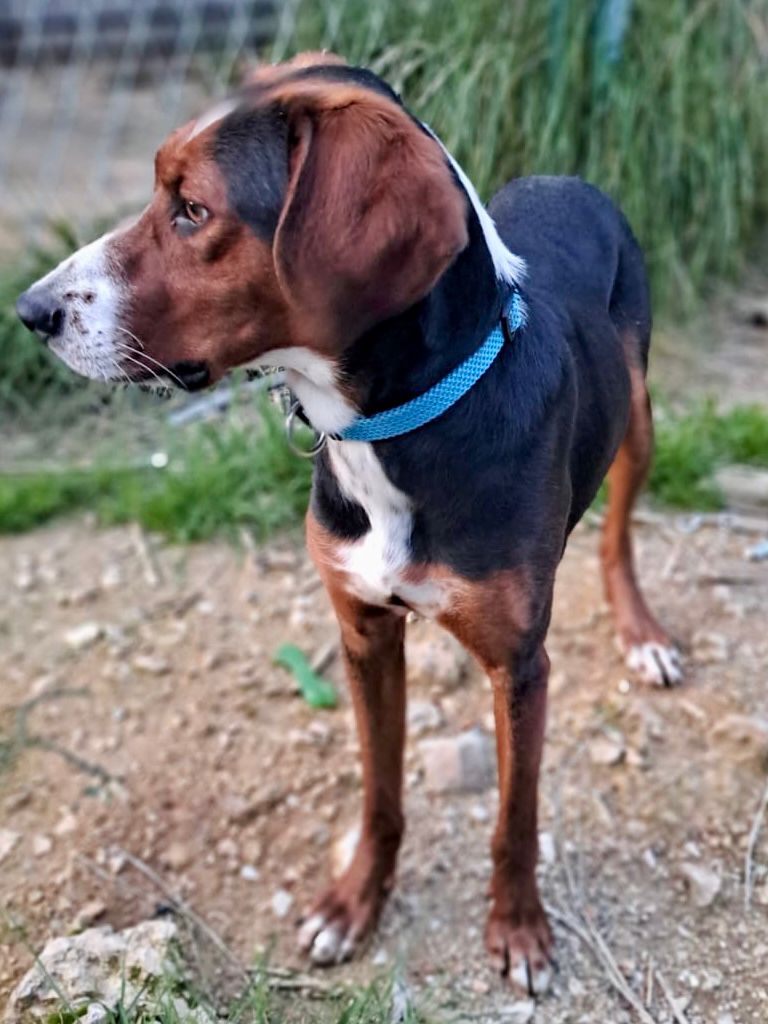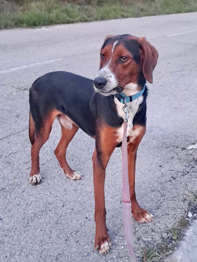 Aki ist ein etwa einjähriger bildschöner Rüde und ein feiner, aktiver Jagdhund, der nun sein eigenes liebevolles Zuhause sucht.