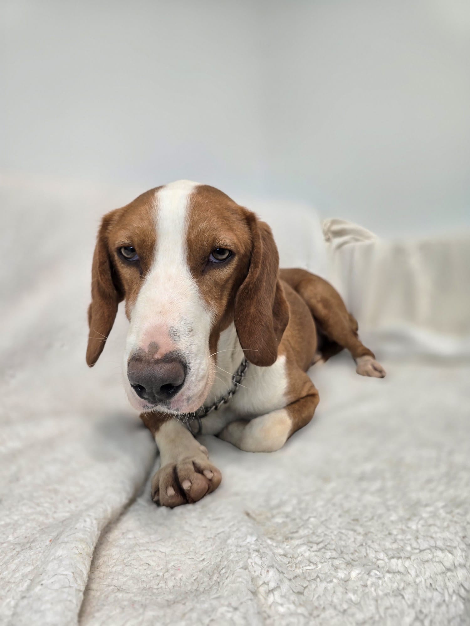 Vermutlich zeigt Amon Anzeichen von HD/ED und Patella, kommt aber gut damit zurecht und genießt Spaziergänge und gemeinsame Aktivitäten in vollen Zügen.