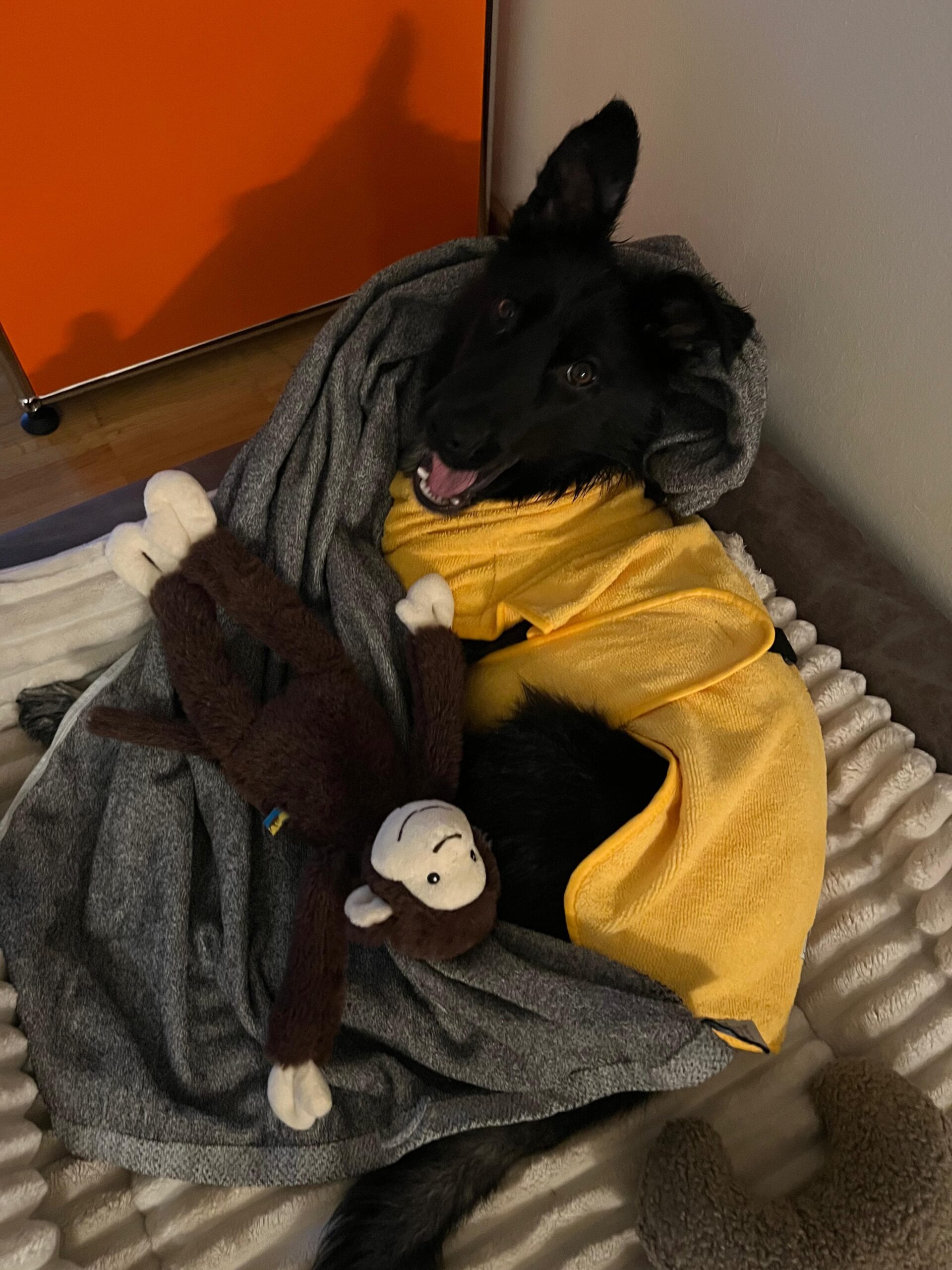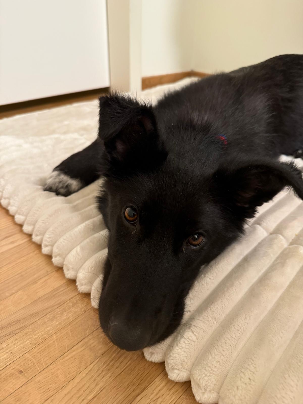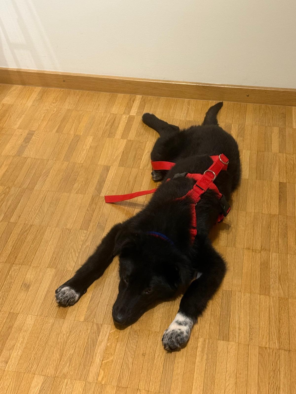Denni lernt die ersten Grundlagen wie Stubenreinheit usw. Dennoch muss er noch viel lernen und hat seinem Alter entsprechend noch viel Flausen im Kopf.