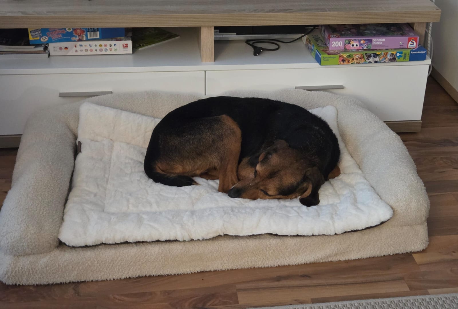 Sie ist ausgesprochen menschenbezogen und verschmust und genießt die Nähe zu ihren Bezugspersonen sehr. Auf ihrer Pflegestelle zeigt sie große Freude an den kleinen Dingen des Alltags – ein Leckerli, ein gemeinsamer Spaziergang oder liebevolle Aufmerksamkeit reichen aus, um sie glücklich zu machen.