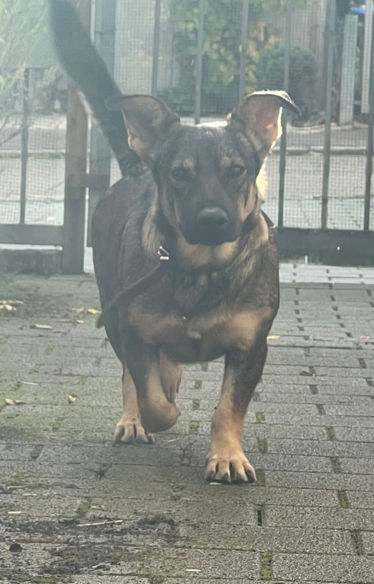 Fine kam ursprünglich mit ihren Welpen von der Straße ins Tierheim in Italien und ist inzwischen in Stuttgart bei ihrer Pflegestelle. Hier schwärmen alle nur von der dackelähnlichen Fine.