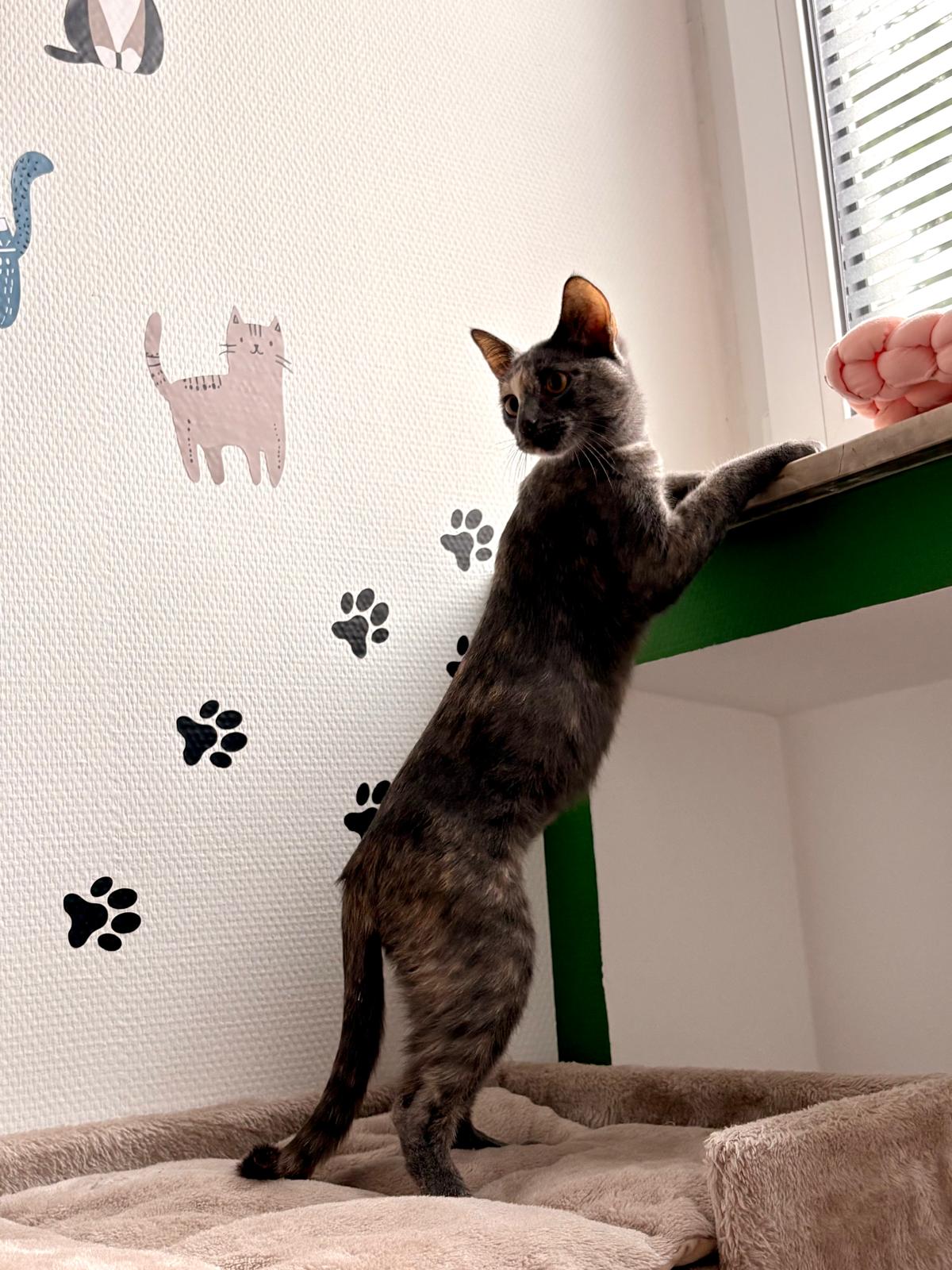 Ob reine Wohnungshaltung oder gesicherter Freigang, beides ist für Herta denkbar, solange sie ausreichend Beschäftigung und Zuwendung bekommt. Wichtig ist: Wer sich für ein Katzenkind entscheidet, sollte wissen, dass Erziehung dazugehört. Herta ist neugierig, verspielt und voller Energie, da kann es schon mal passieren, dass die Wohnung neu dekoriert wird.