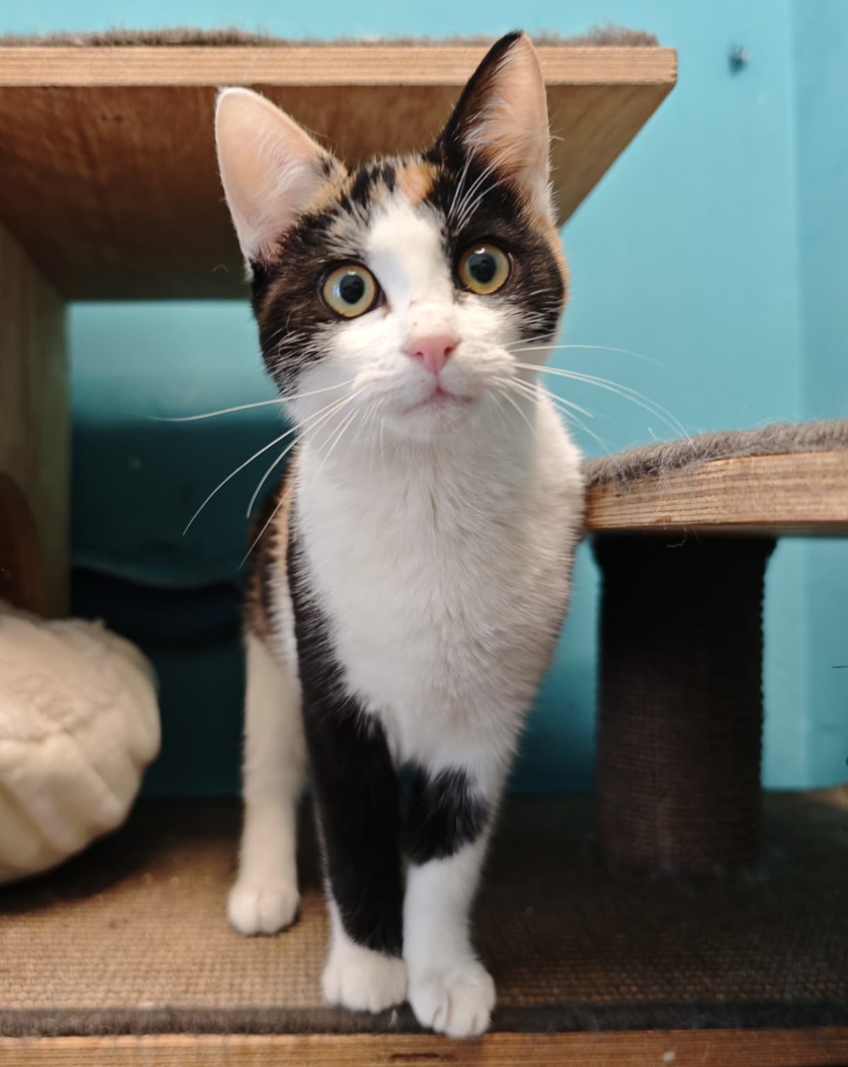 Wie alle Jungkatzen hat Kat viel Energie, probiert Dinge aus und dekoriert auch gern mal etwas um. Damit sie glücklich und ausgeglichen bleibt, braucht sie ausreichend Beschäftigung und einen passenden Katzenpartner. Junge Katzen werden bei uns ausschließlich zu zweit oder zu einer vorhandenen, gleichaltrigen Katze vermittelt.