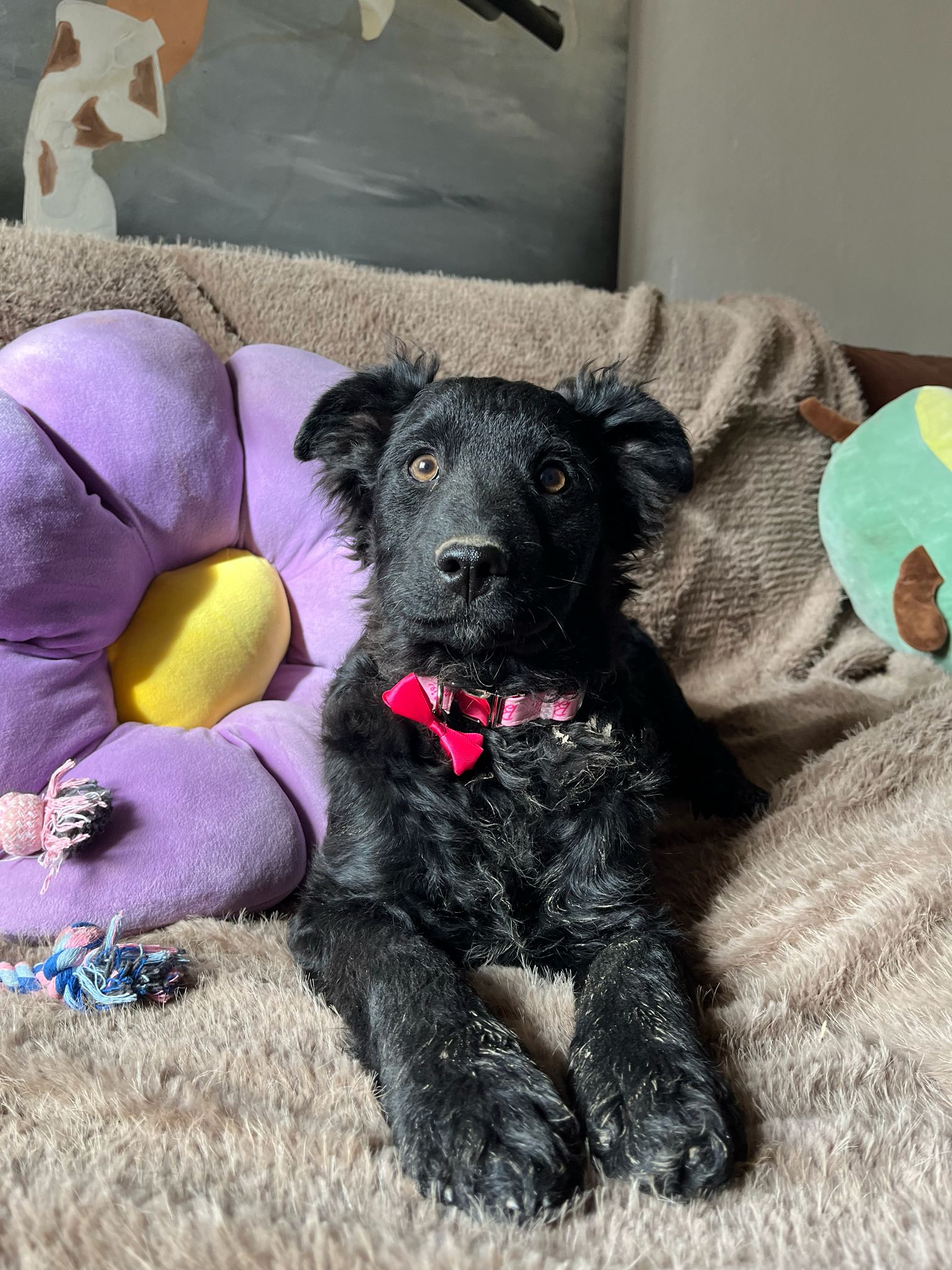 Stubenrein ist Lara aktuell noch nicht, aber sie lernt jeden Tag dazu. Geduldige Unterstützung und ein ruhiger Alltag helfen ihr sehr, neue Routinen zu verstehen.