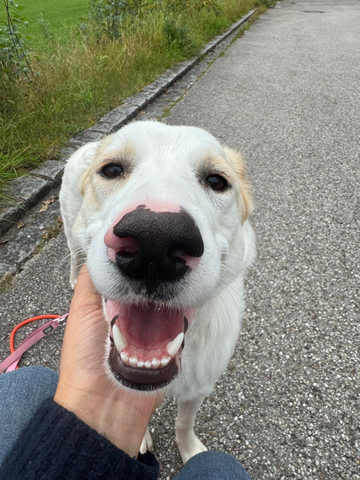 Vermutlich trägt sie in sich die Gene eines Maremmano, eines Herdenschutzhundes. Das macht sie nicht nur zu einer treuen Seele, sondern verleiht ihr auch Charakter, Intelligenz und einen feinen Beschützerinstinkt. Deshalb wünschen wir uns für Mirka Menschen mit Hundeerfahrung – oder solche, die bereit sind, sich liebevoll und geduldig in die Bedürfnisse eines Hundes mit Herdenschutzgenen einzuarbeiten.