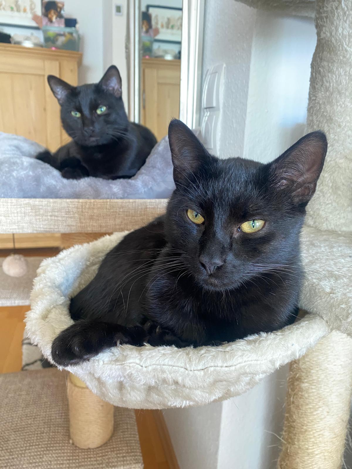 Die beiden stammen aus einer Privatabgabe, da ihre vorherige Halterin leider überfordert war. Nun suchen sie gemeinsam ein liebevolles Zuhause, in dem sie für immer zusammenbleiben dürfen. Theo und Nino sind echte „Black Beauties“ – elegant, sensibel und voller Lebensfreude.