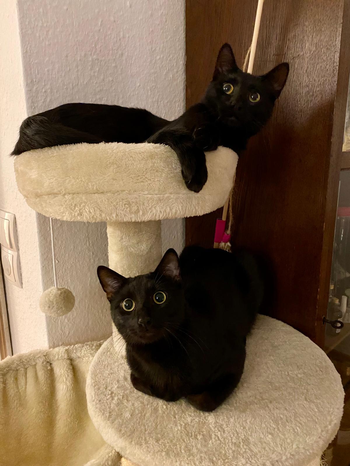 Theo und Nino sind zwei zauberhafte Katerbrüder, die nicht nur durch ihr glänzendes schwarzes Fell bestechen, sondern auch durch ihre besondere Bindung zueinander. Anfangs zeigen sich die beiden etwas zurückhaltend, doch mit Geduld und liebevoller Zuwendung öffnen sie ihre Herzen. Theo ist der mutigere von beiden und geht gerne als Erster auf Entdeckungstour, während Nino lieber aus sicherer Entfernung beobachtet, bevor er sich anschließt. Gemeinsam sind sie ein eingespieltes Team, das sich gegenseitig Halt und Sicherheit gibt.