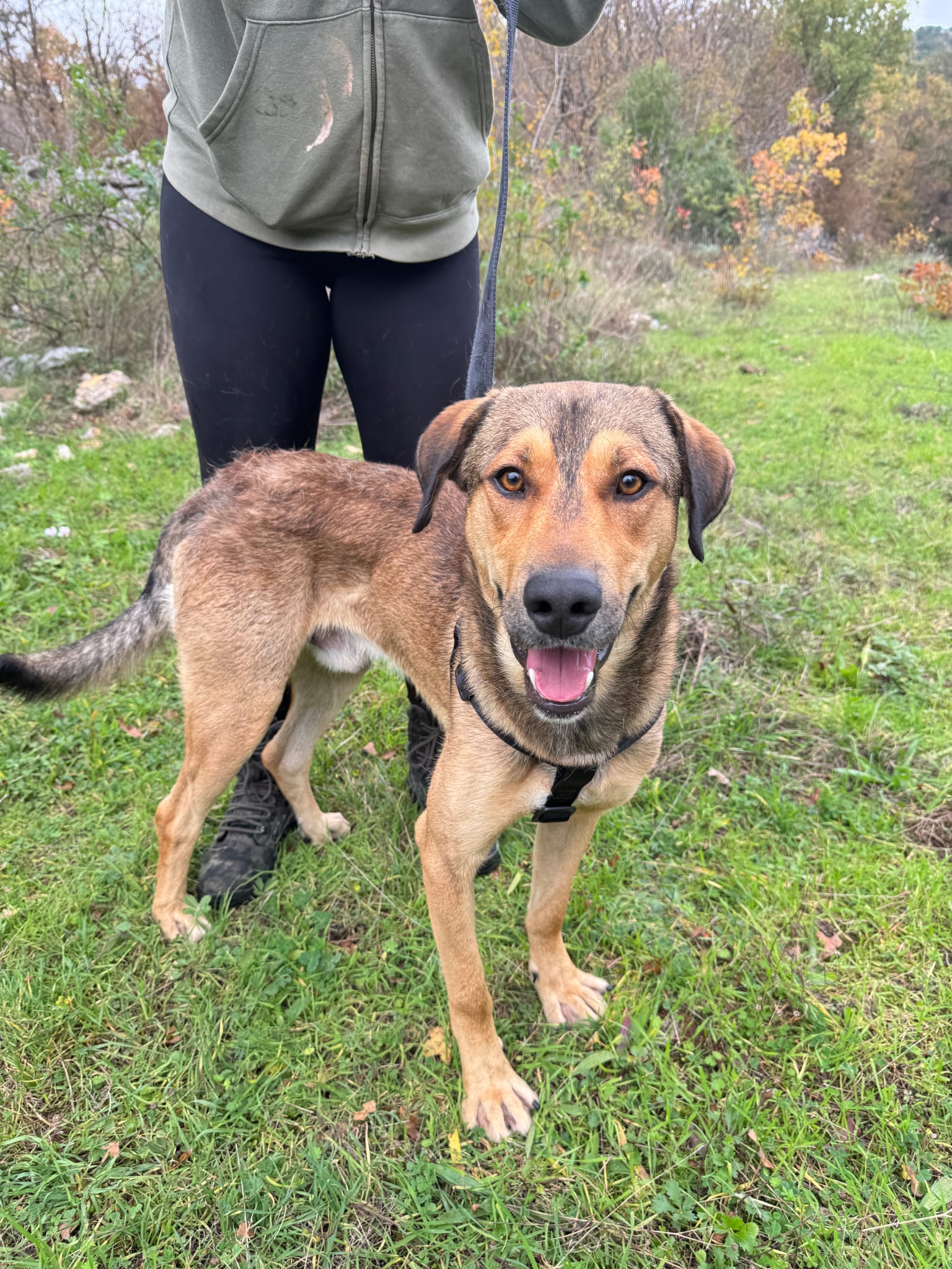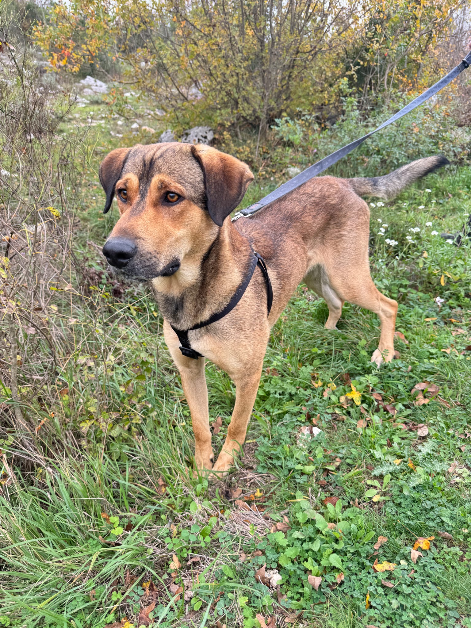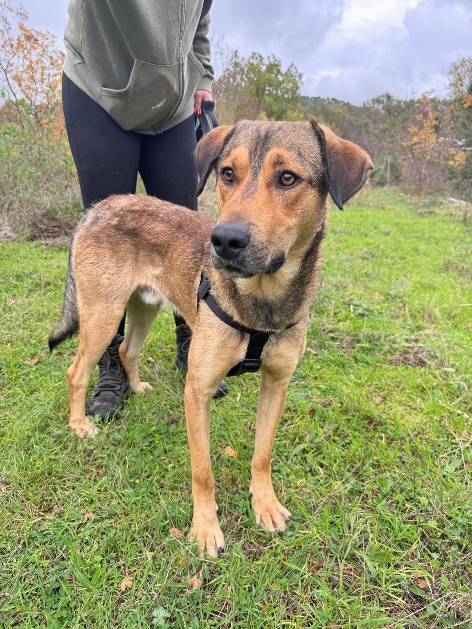 Obwohl er noch jung ist, zeigt er bereits ein sehr freundliches und liebevolles Verhalten. Das Laufen an der Leine hat er schon gelernt und zeigt sich sicher, aber auch sehr neugierig und erkundet begeistert seine Umgebung. Natürlich ist die Leinenführigkeit noch ausbaufähig.