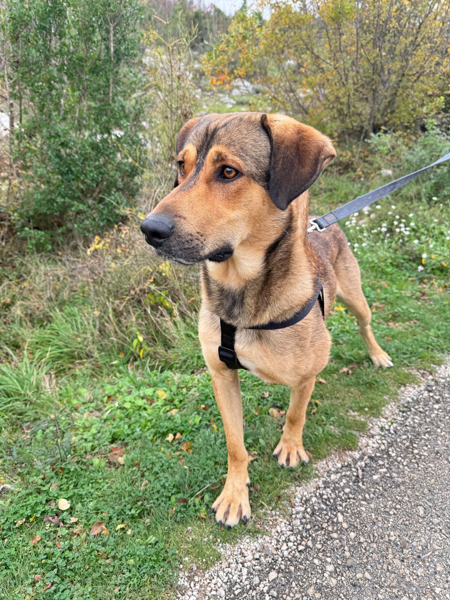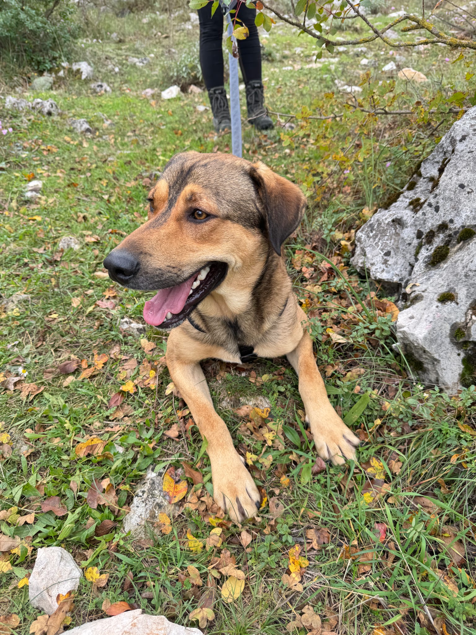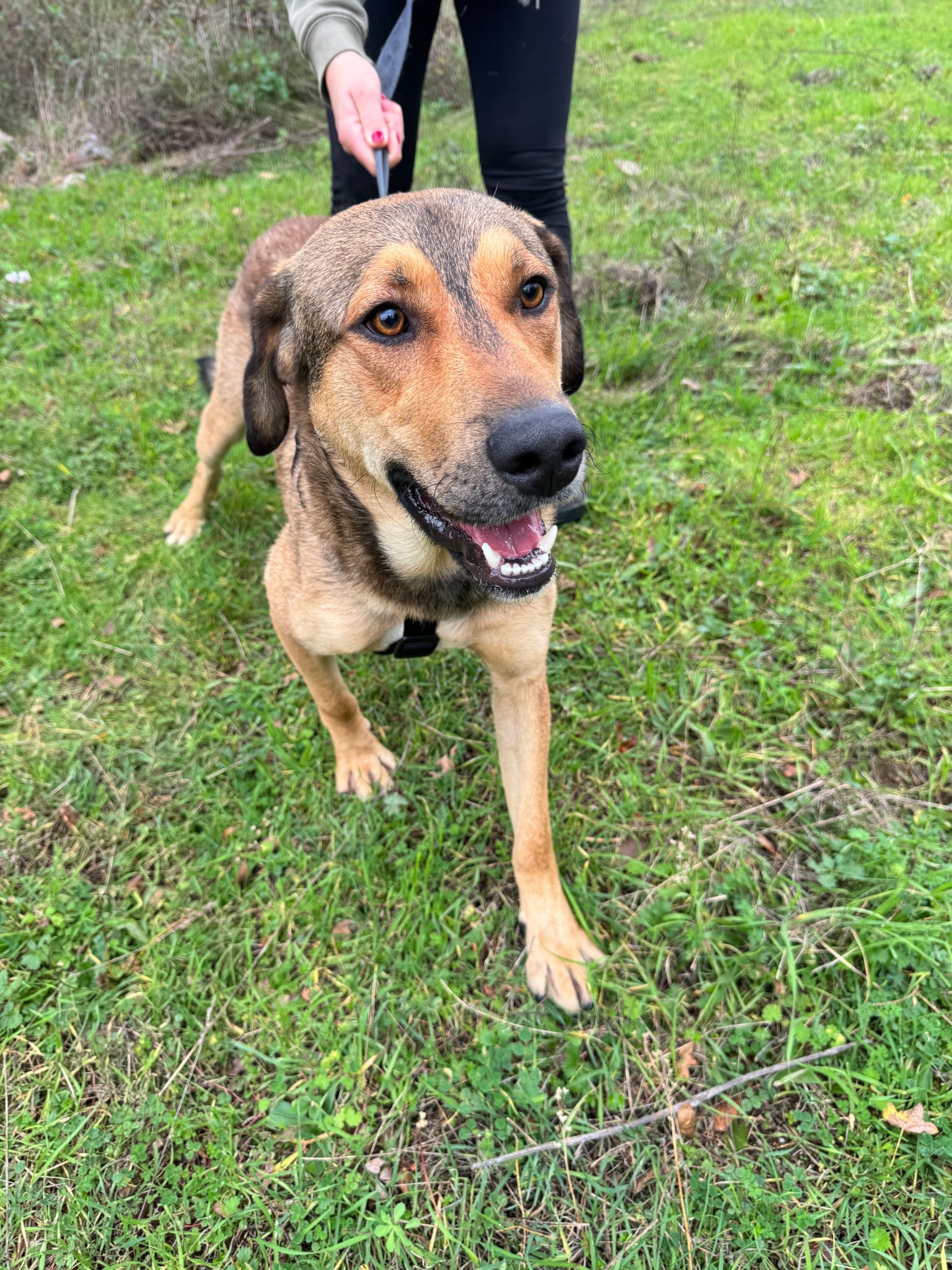 Obwohl er noch jung ist, zeigt er bereits ein sehr freundliches und liebevolles Verhalten. Das Laufen an der Leine hat er schon gelernt und zeigt sich sicher, aber auch sehr neugierig und erkundet begeistert seine Umgebung. Natürlich ist die Leinenführigkeit noch ausbaufähig.
