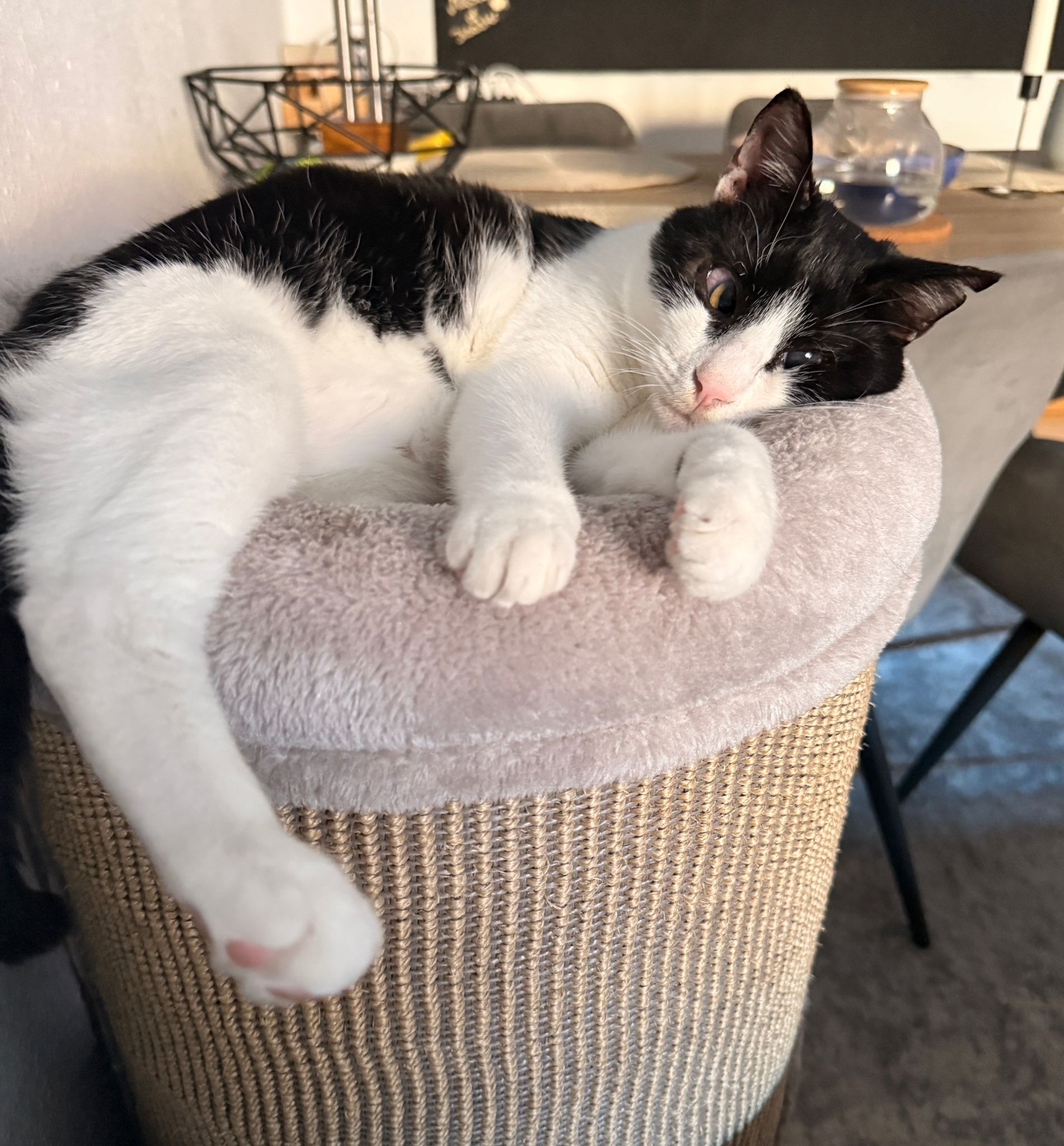 Pero ist etwa ein Jahr alt und ein sehr verschmuster und verspielter Kater. Er liebt die Nähe seiner Menschen, genießt jede Schmuseeinheit und bringt mit seiner fröhlichen Art viel Leben ins Haus. Anfangs ist er etwas schüchtern, doch sobald er seine Umgebung kennt, entspannt er sich schnell und zeigt, wie anhänglich und liebenswert er ist.