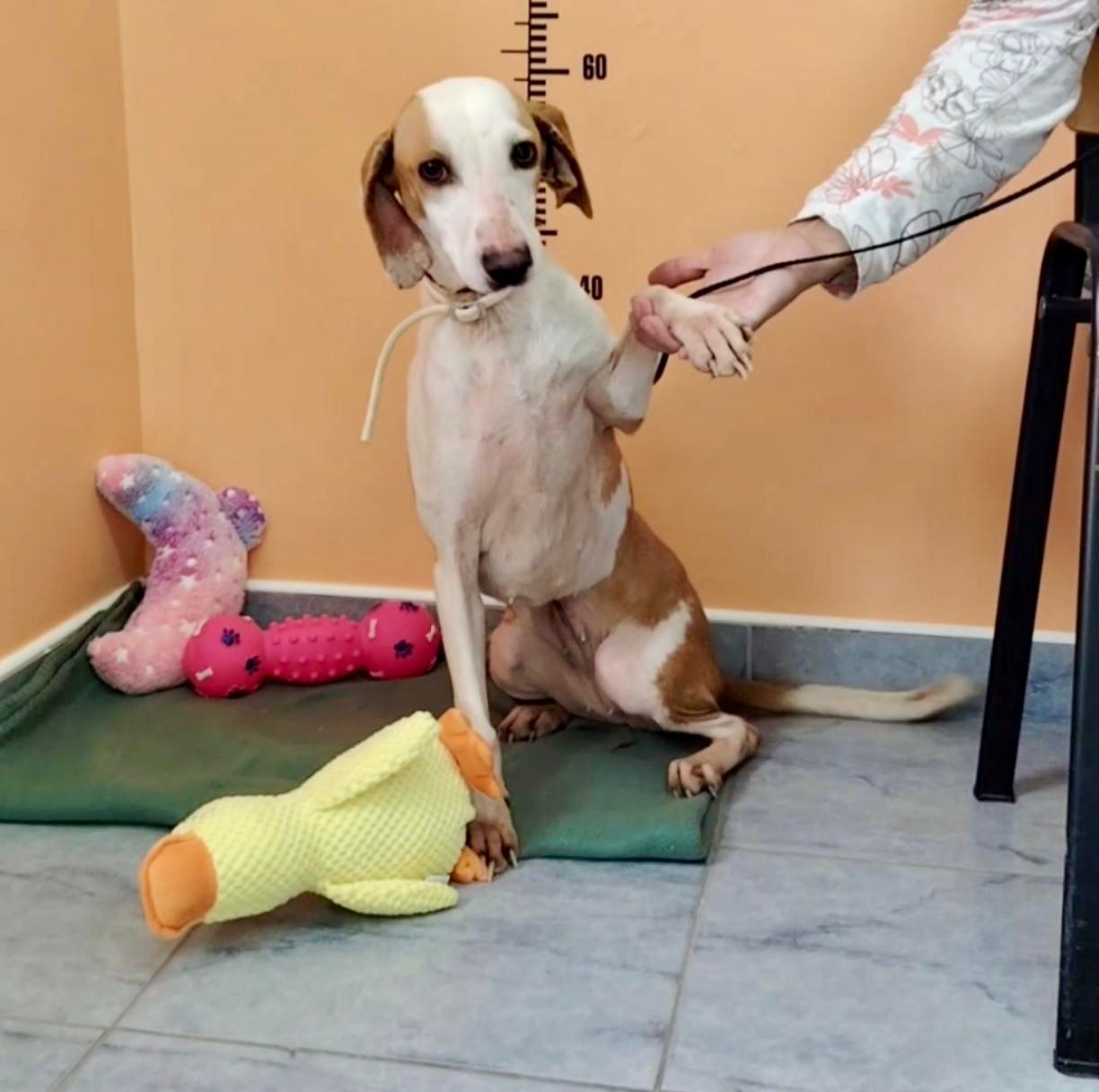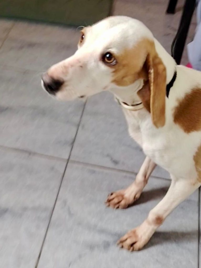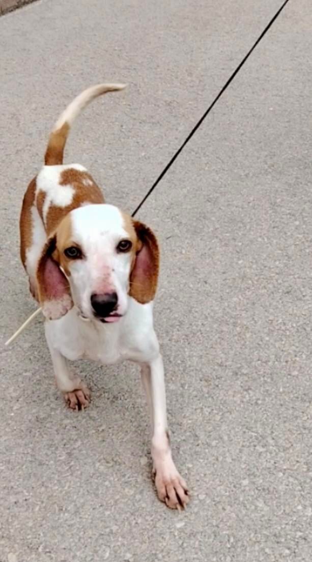 Wie viele Jagdhunde teilt Pixie ein trauriges Schicksal – sie wurde irgendwo im Nirgendwo ausgesetzt. Was sie zuvor erlebt hat, wissen wir nicht. Aber trotz allem hat sie sich ihre Sanftheit und ihre Liebe zu Menschen bewahrt.