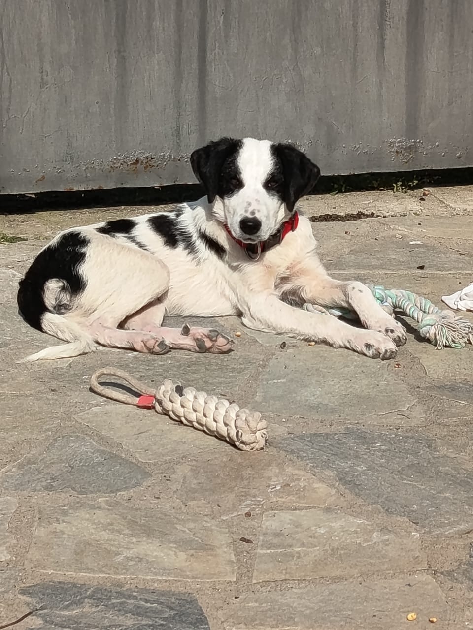 Inzwischen ist die schüchterne Junghündin in Sicherheit auf einer Pflegestelle in Griechenland. Dort blüht sie mit jedem Tag ein kleines Stückchen mehr auf. Typisch Junghund ist sie verspielt, neugierig und entdeckt Schritt für Schritt ihre Umgebung. Mit anderen Hunden versteht sie sich prima, zeigt sich dabei allerdings auch junghundetypisch distanzlos – hier ist liebevolles, konsequentes Training gefragt.